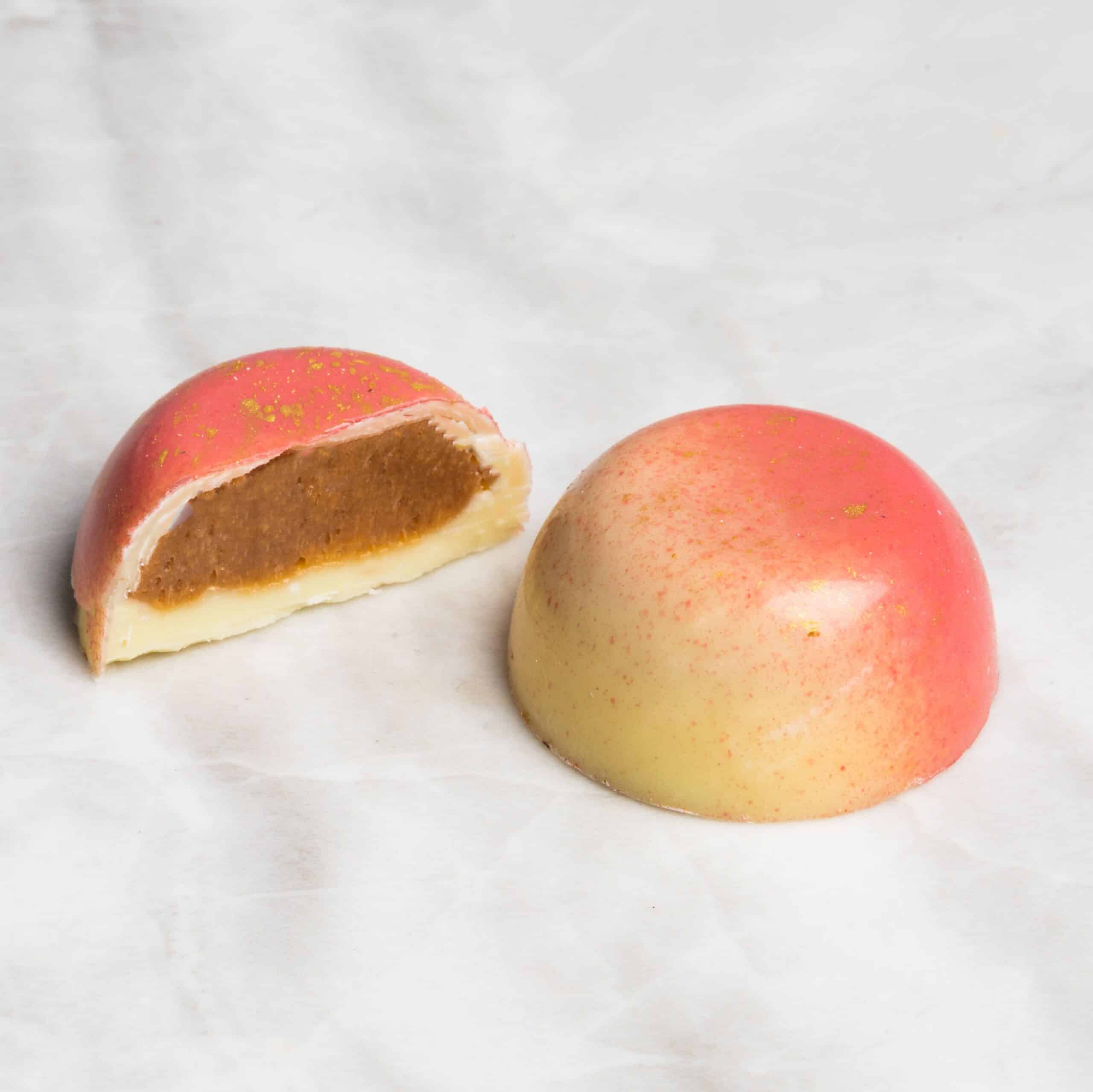 Malva: Malva pudding ganache encased in gold chocolate.